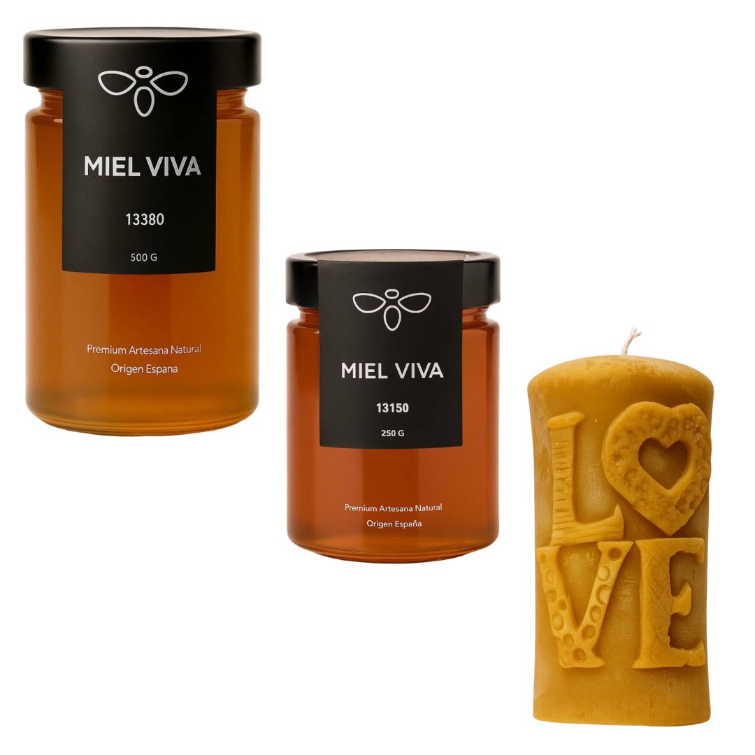 Romántico y especial: 1 tarro de 250 g, 1 de 500 g y 1 vela Love.